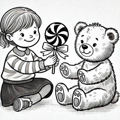 • Оля очень щедрая девочка, ничего не жалеет для медвежонка.
