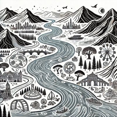 • Великая река текла через несколько стран, соединяя их своими водами.