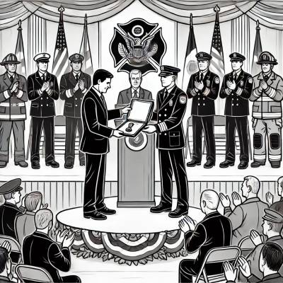 • Официальная благодарность президента была вручена пожарным и спасателям за их храбрость при тушении пожаров.