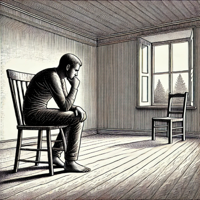 • Он был совсем один в комнате.