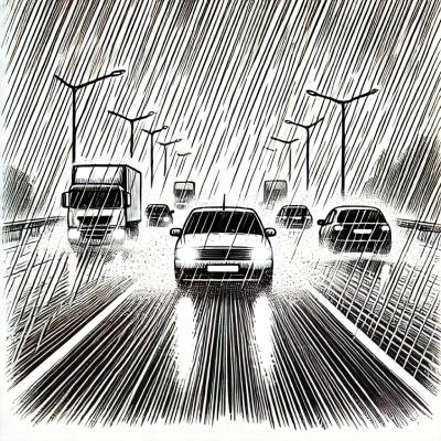 • Из-за дождя видимость на трассе значительно ухудшилась.
