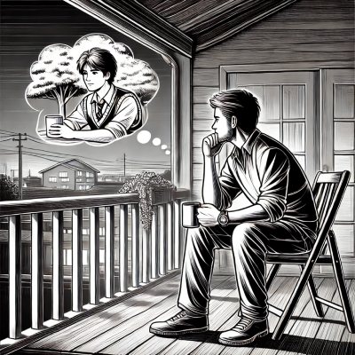 • Вечером он сидел на балконе и вспоминал свои школьные годы.