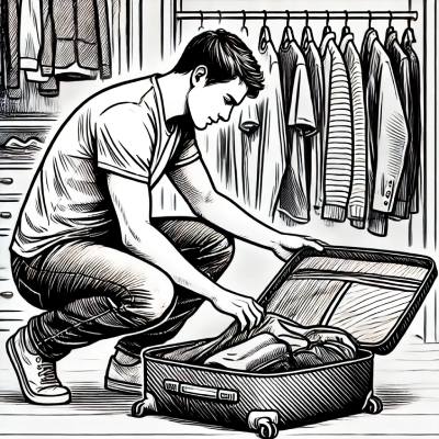 • Он взял свои вещи, а остальная одежда осталась в шкафу.