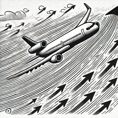 • Самолёт начал отклоняться от заданного курса из-за сильного ветра.