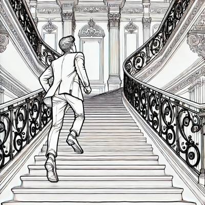 • Он с трудом поднимался по крутой лестнице.