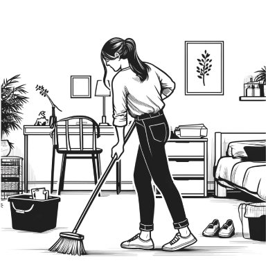 • Она почти закончила уборку в комнате.