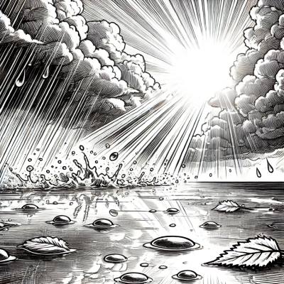 • Дождь внезапно прекратился, и выглянуло солнце.