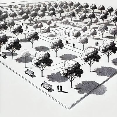 • Деревья в этом парке посажены редко, много свободного пространства.