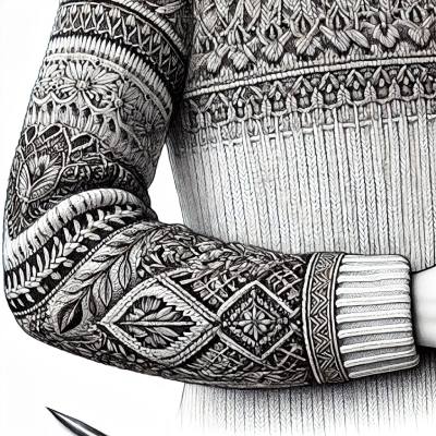 • Рукав свитера был украшен красивыми узорами.