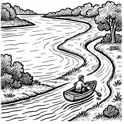 • Лодка направилась в узкий рукав реки.