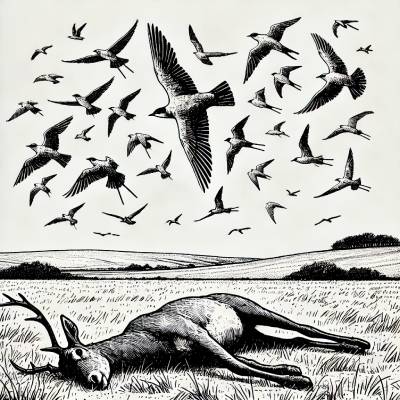 • Птицы начали кружить над трупом животного, лежавшим в поле.