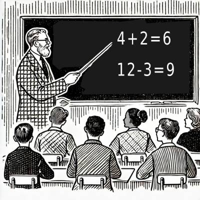 • Учитель объясняет начальные принципы математики — сложение и вычитание.