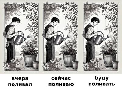 • Я поливал, поливаю, буду поливать.