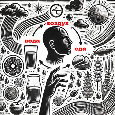 • Для поддержания жизни организм человека нуждается в воздухе, воде и пище.