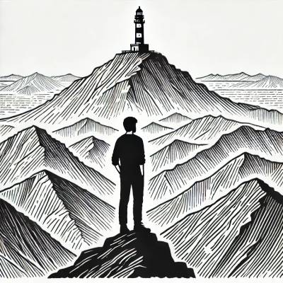 • На той вершине горы стоит старый маяк.