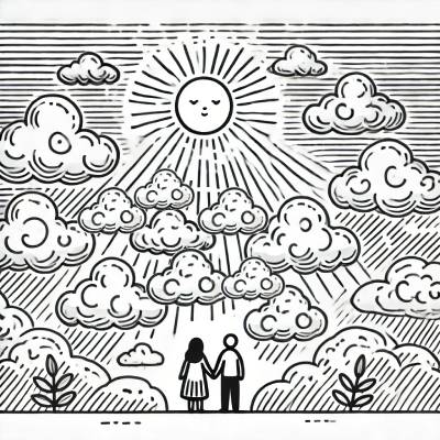 • Солнце за облаками.