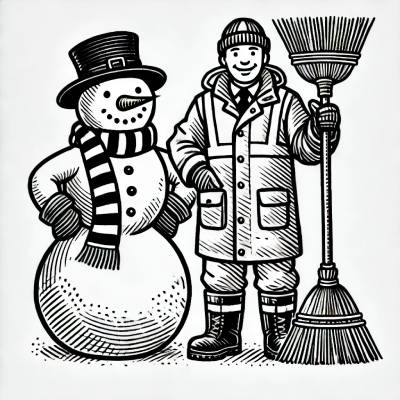 • Снеговик улыбается, словно наш дворник.